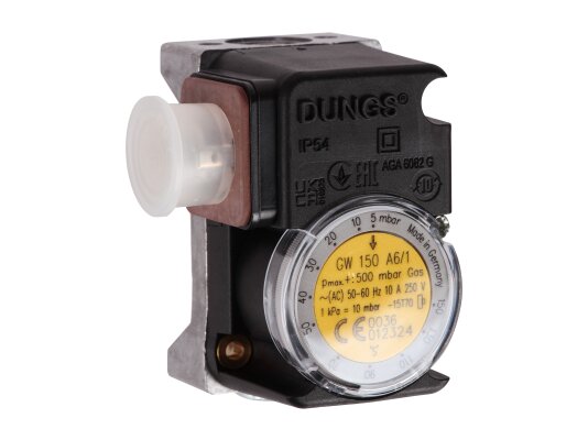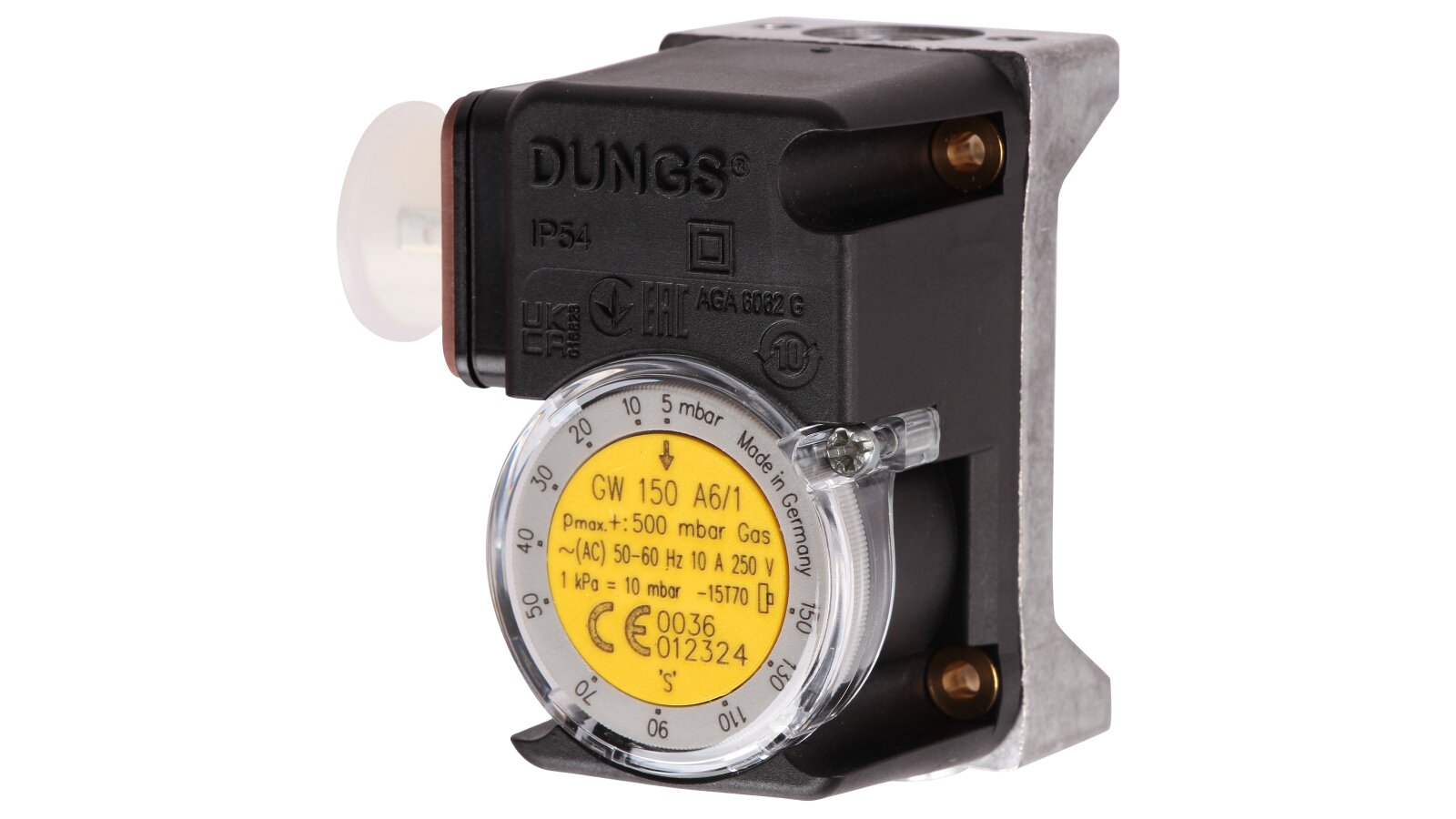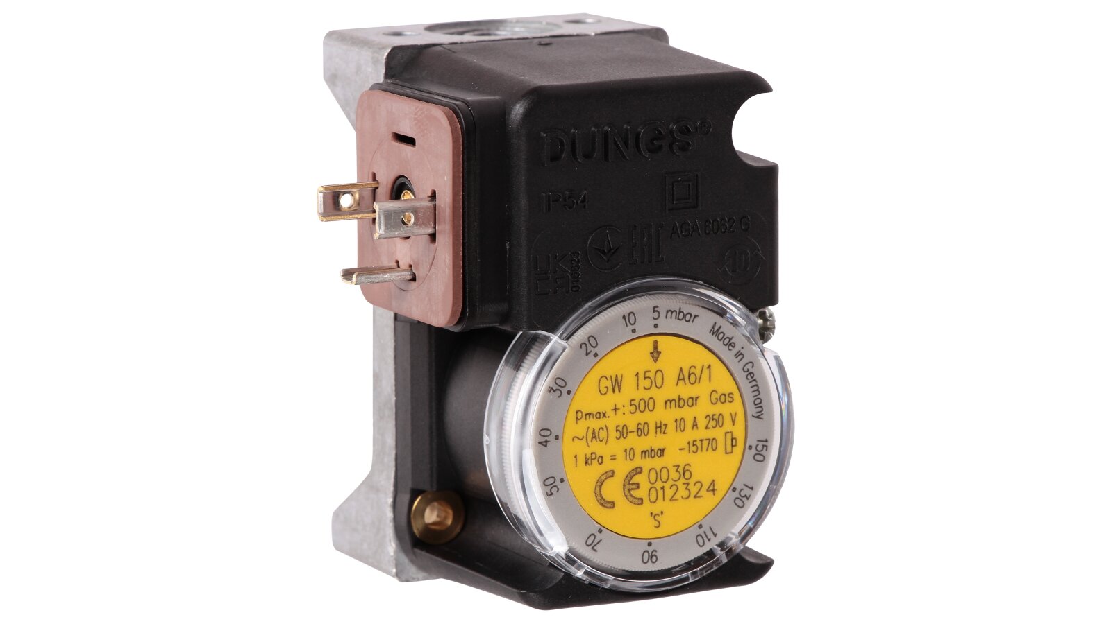 The Weishaupt GW...A6 pressure switch is designed for use in systems consuming gas of family I-III according to EN 1854. It is built into industrial combustion equipment with a pressure of no more than 0.5 bar.