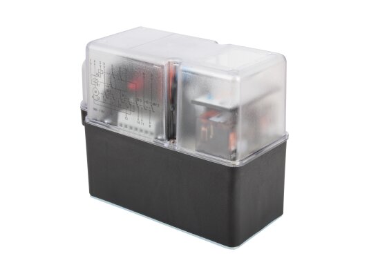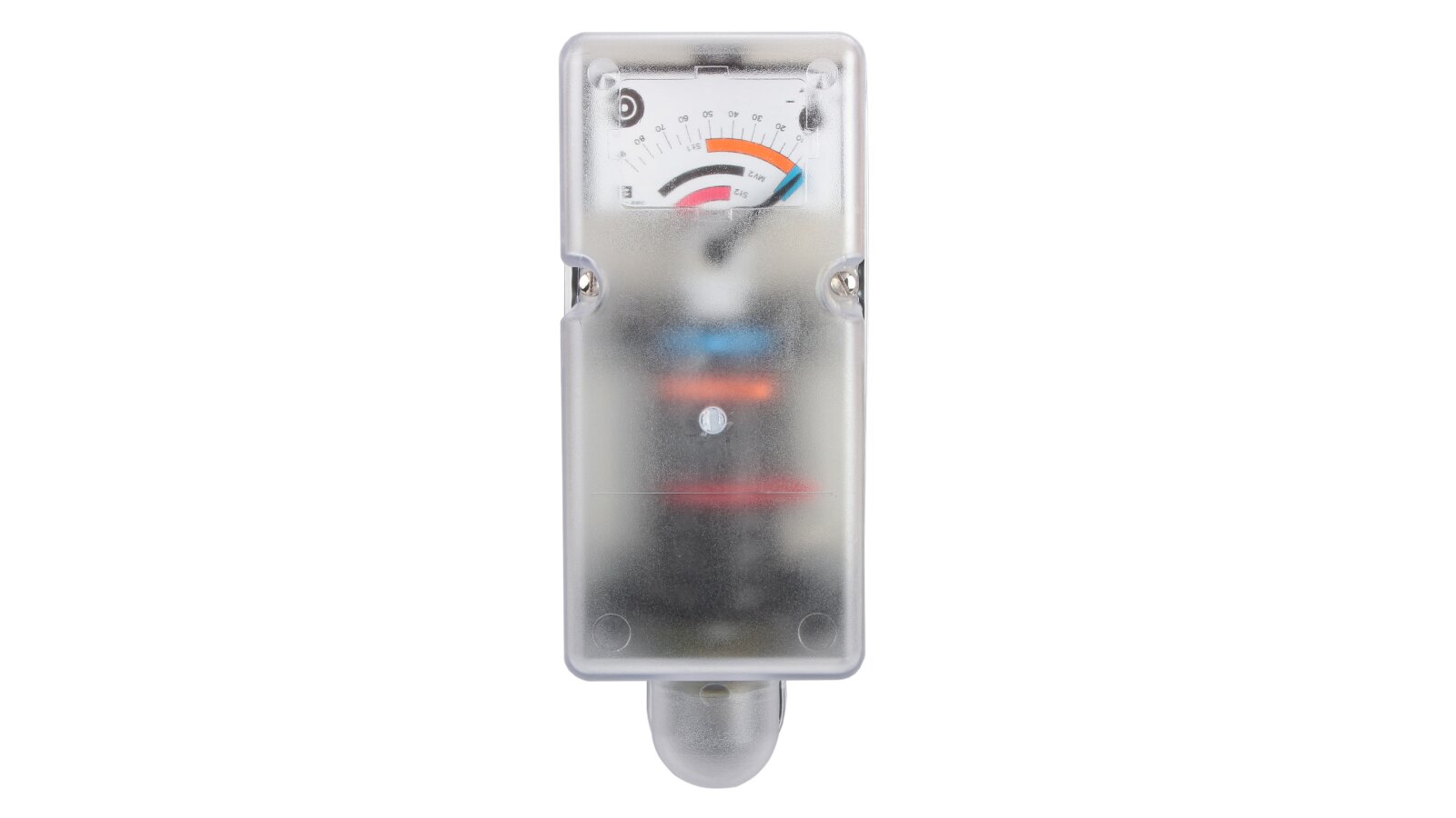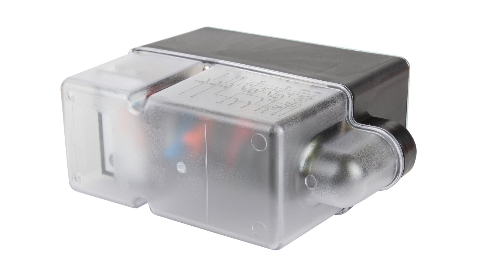 The Riello LKS servo drive is assembled in a small housing. It consists of a synchronous electric motor connected to a reduction gear. The worm self-locking gear is the last stage, providing the entire range of damper positions. To adjust the position, levers with color coding of the performance level (closed position / low / high performance) are used. The current position of the air damper is indicated on the scale located under the cover of the device.