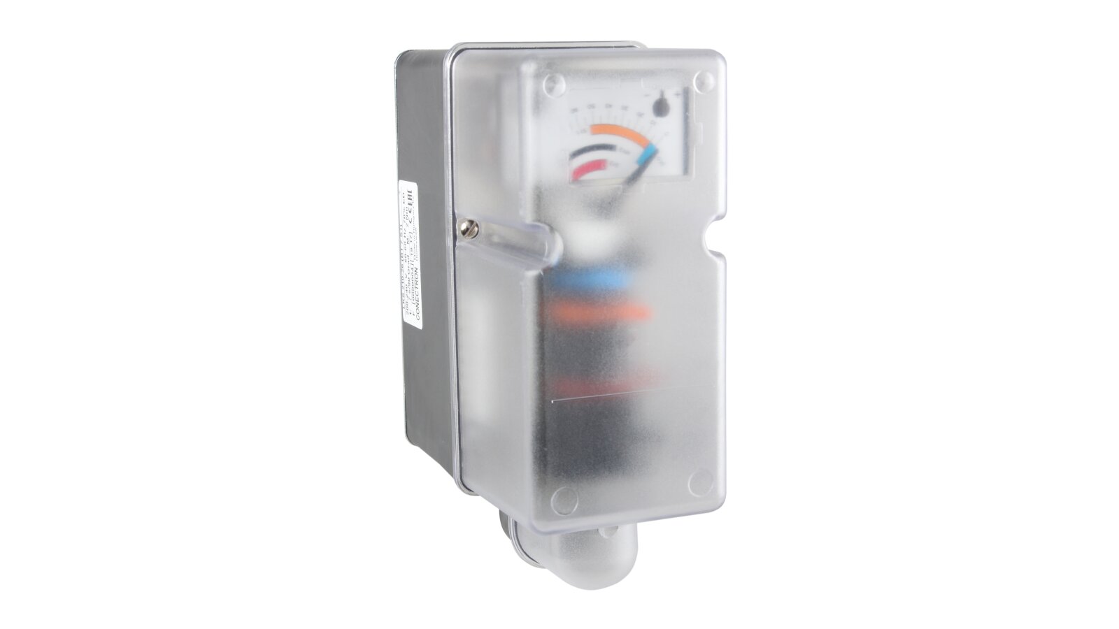 The Riello LKS air damper actuator is equipped with a synchronous motor connected to a reduction gear. The worm gear with locking is the last stage, providing a full range of air damper positions. The adjustment unit is located under the transparent cover. To change the operating parameters, levers with color-coded performance (closed position/low/high performance) are provided. The current position of the air damper is displayed on the scale.