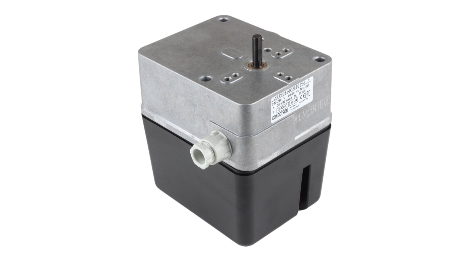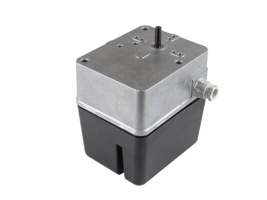 The servo drive for air dampers is assembled in a high-strength aluminum housing. The design is designed for heavy industrial loads and intensive use. The 230 V synchronous motor drives the drive and cam shaft using a gearbox. The transmission is easily disconnected. The cam shaft controls the limit and auxiliary switches.