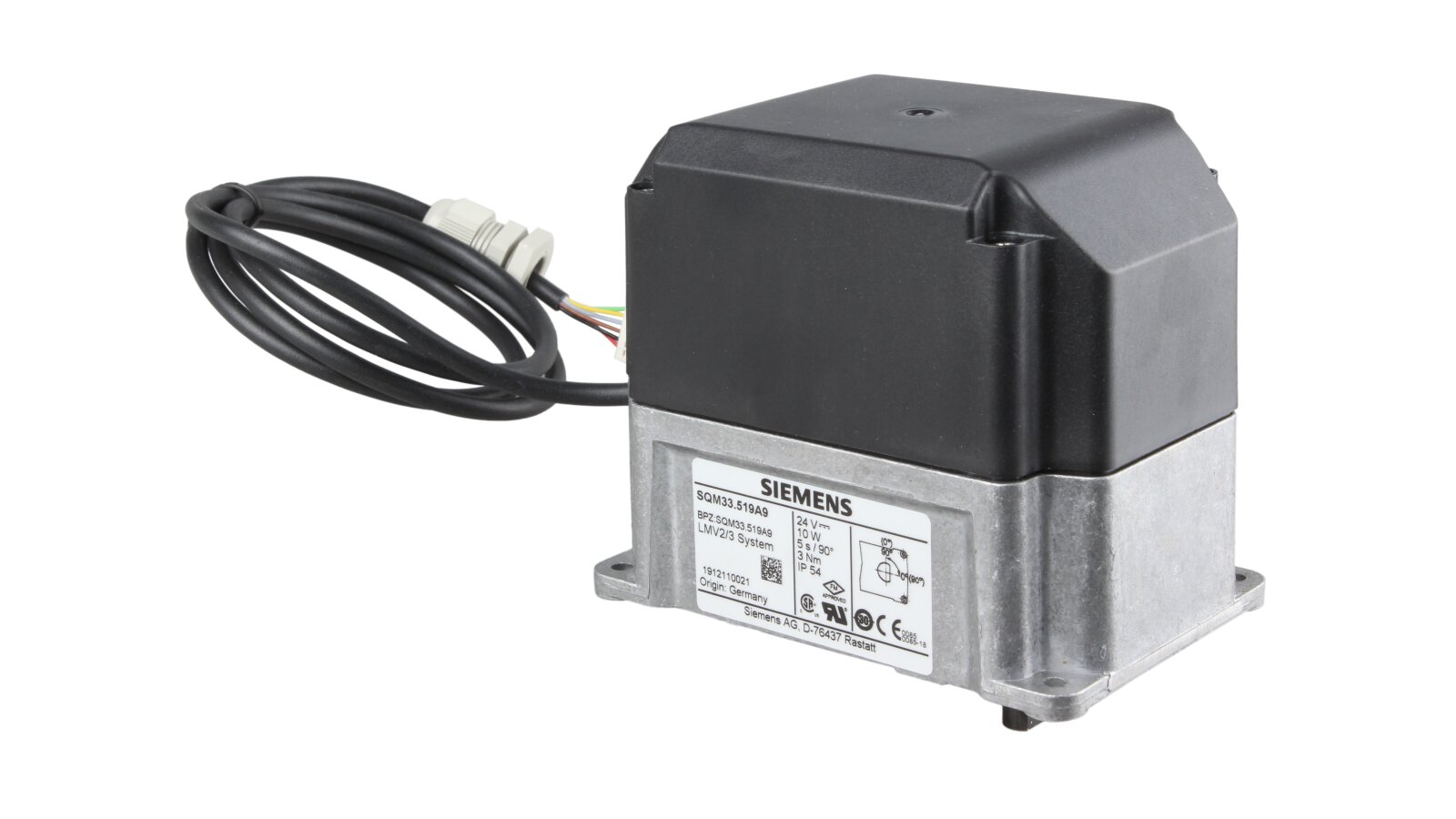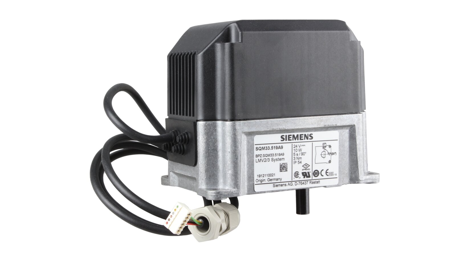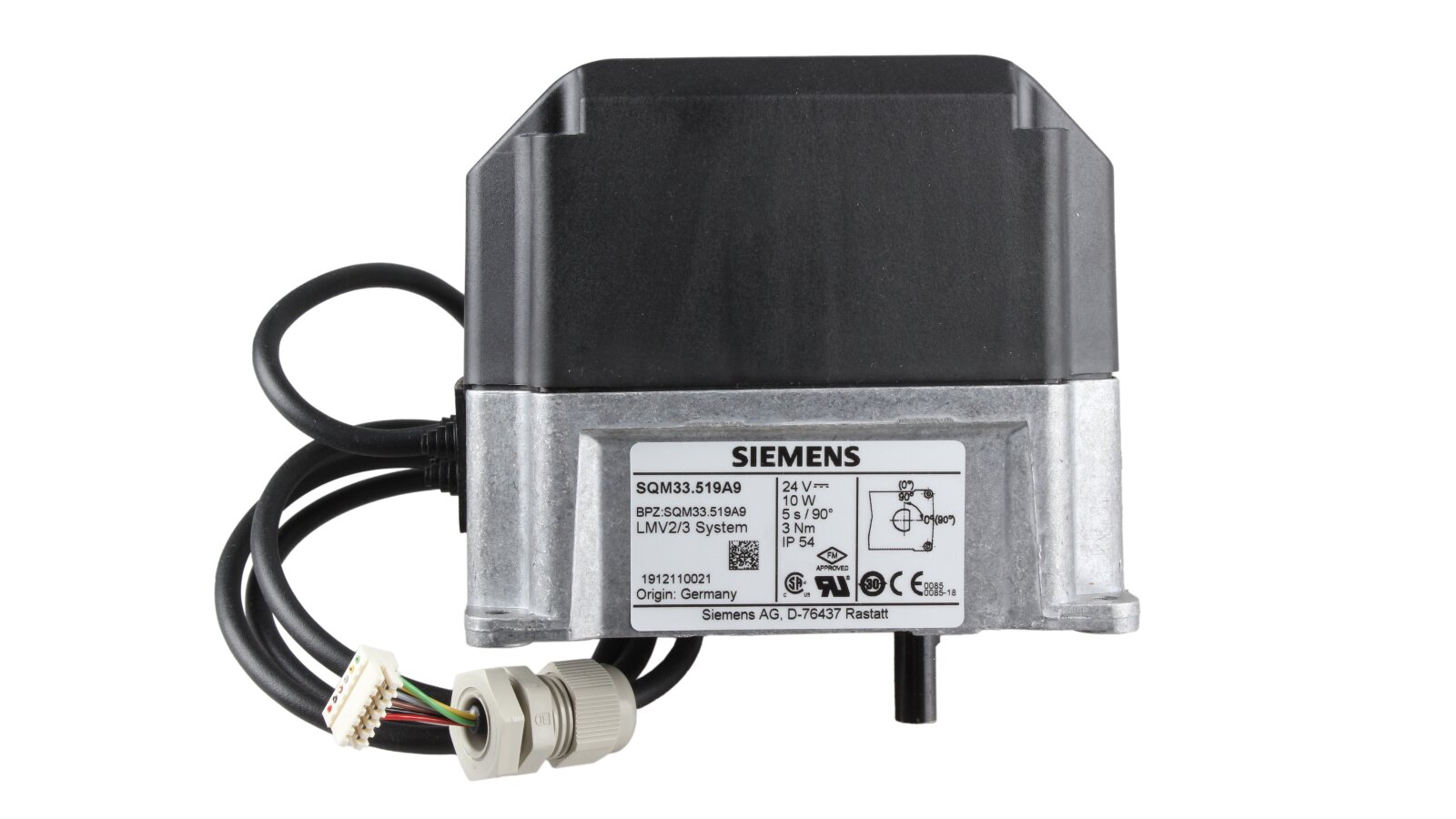 Servo drive Riello SQM33.519A9, art: 3013931 is part of the automatic air supply control system when forming the fuel-air mixture. Provides precise movement of the damper taking into account the commands of the automation or electronic controller. The design is adapted for installation in Riello burners. Does not require maintenance.