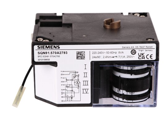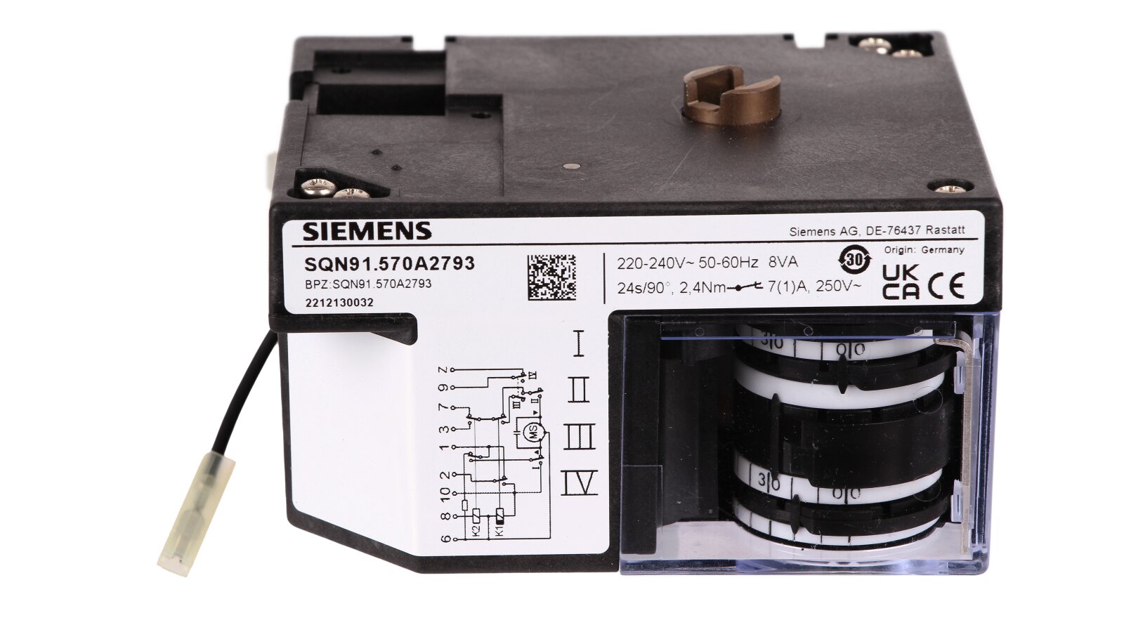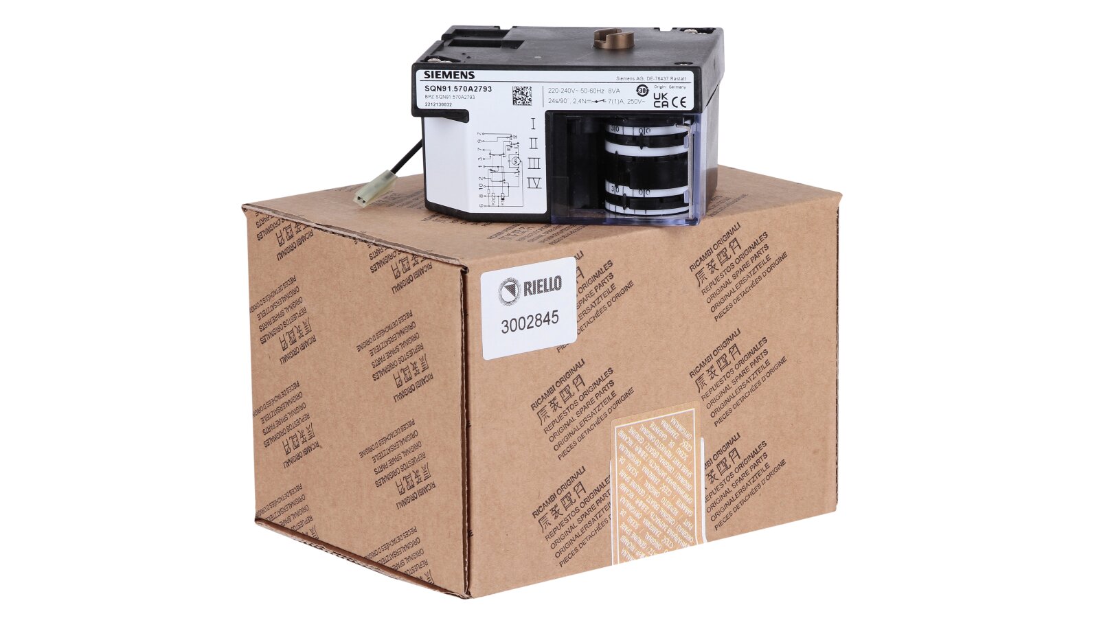 Servo drive Riello SQN91.570A2793, art: 3002845 is designed for use in combustion air supply control systems for low-power and medium-power industrial burners. Moves the air damper in accordance with the settings and commands of the boiler automation. The drive is characterized by economical energy consumption, reliable design, resistance to temperature effects. The working unit is lubricated for the entire service life, does not require maintenance.