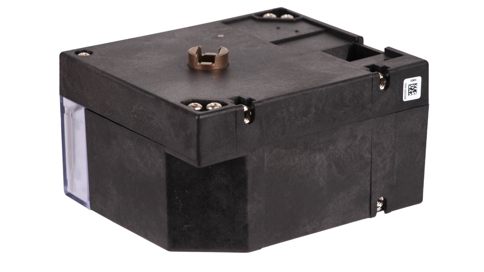 The Riello SQN91 servo drive is equipped with a plastic housing that is resistant to temperature effects and impacts. The adjustment unit is located behind a transparent cover. Electrical connection is made to screw terminals. The drive is powered by a synchronous electric motor with blocking protection and right-hand shaft rotation. The gearbox is disconnected. Thanks to prolonged-action lubrication, the working unit does not require maintenance.