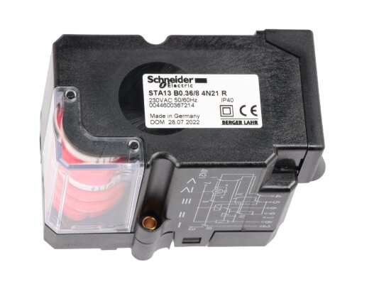 The Berger Lahr / Schneider Electric STA13 B0.36/8 4N21 R servo drive is manufactured specifically for Riello burners operating on gaseous or liquid fuel. It is an important element of the automatic fuel supply system to the burner device, and regulates the volume of air supplied to the firebox. It has manual adjustment and control using a relay.