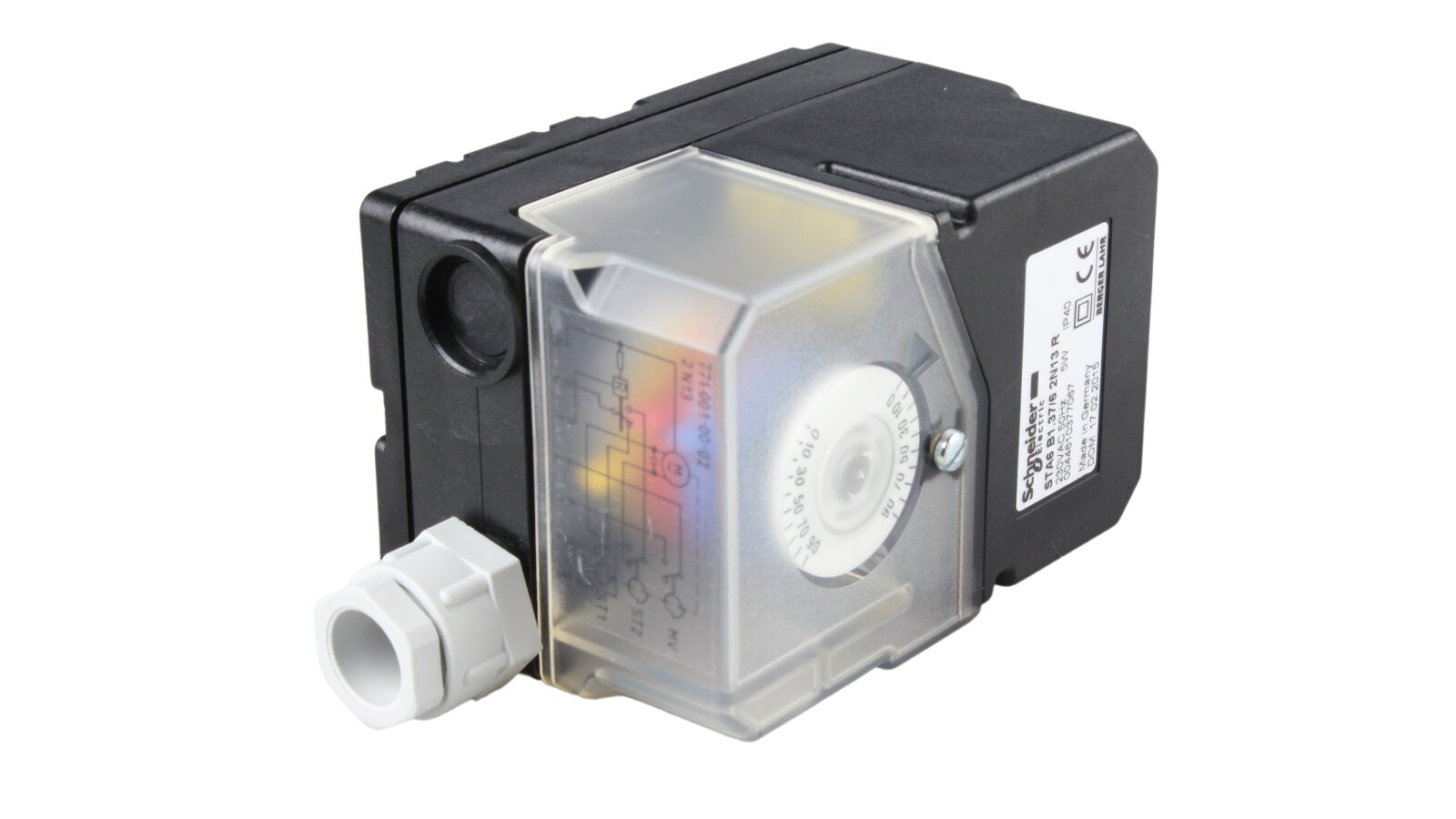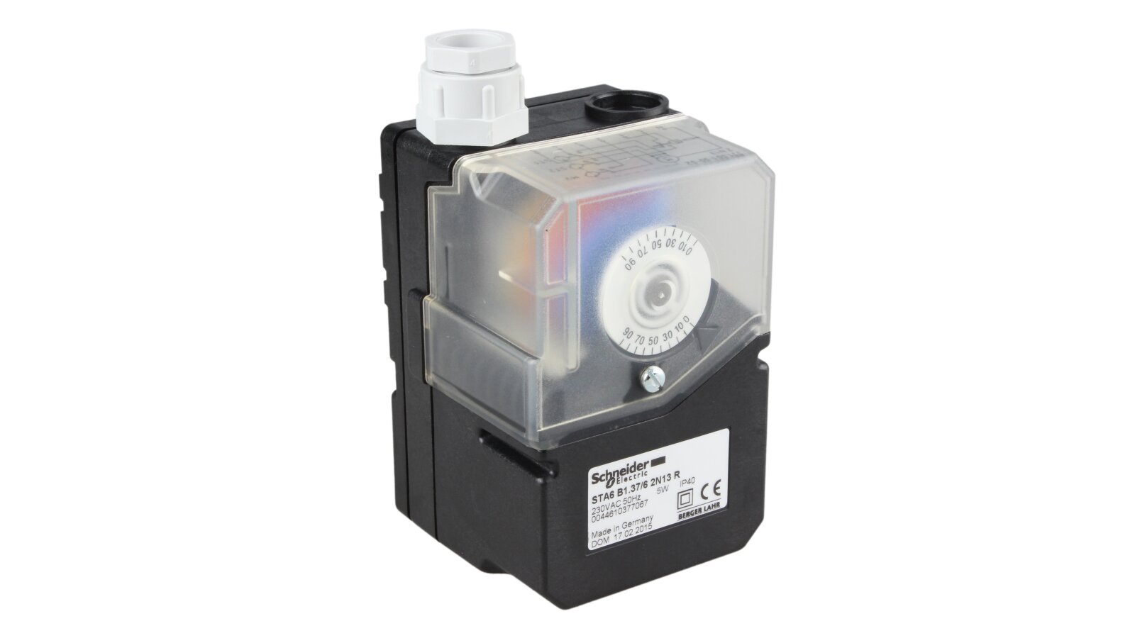 The Berger Lahr / Schneider Electric STA6 B1.37/6 2N13 R servo drive is designed to equip Riello burners. It positions the air damper during the process of creating a fuel-air mixture, ensuring the efficiency of the boiler plant and increasing efficiency. It has manual adjustment and control using a relay.