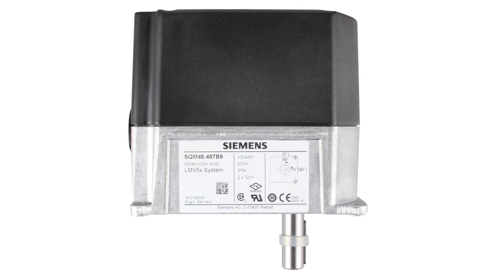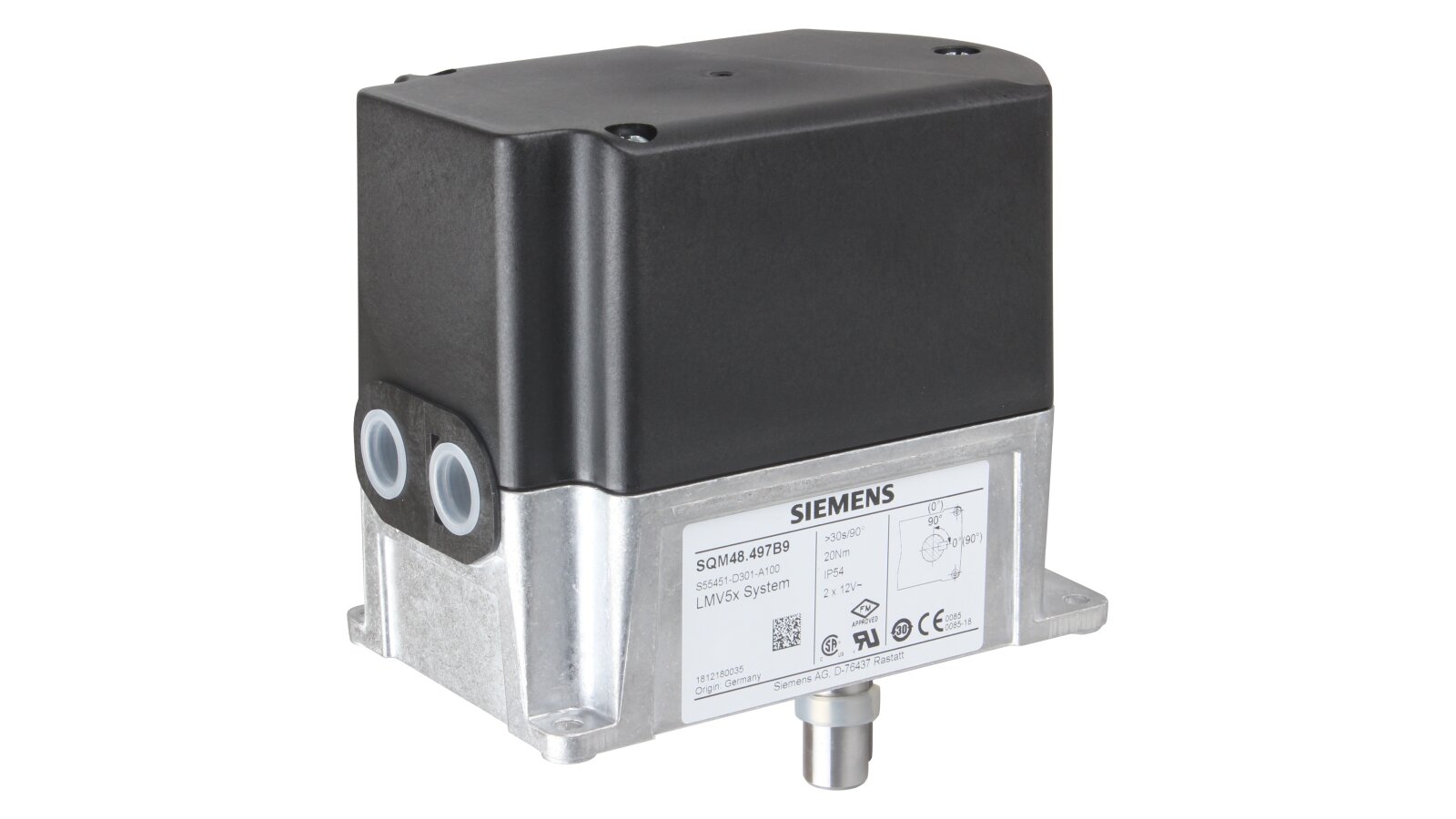 The Weishaupt SQM48.497B9 servo drive, art. 651503, has an improved, vibration-resistant design, interchangeable with earlier versions. Provides movement of the air damper, gas valve and other similar devices with a rotary action. It is built into automatic control systems for the supply of the working medium of industrial gas and liquid fuel burners. It helps to obtain the optimal proportion of fuel and air and the efficient operation of the combustion unit. The operating parameters (direction of shaft rotation, end points, operating time) are set on the main control device.