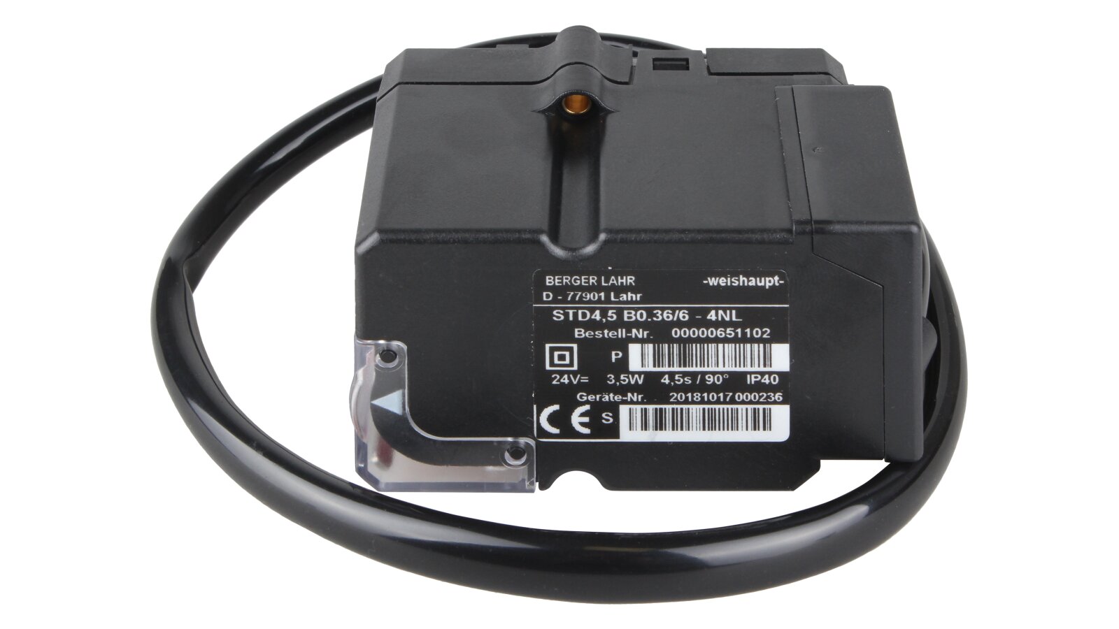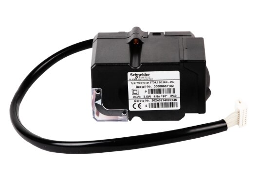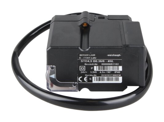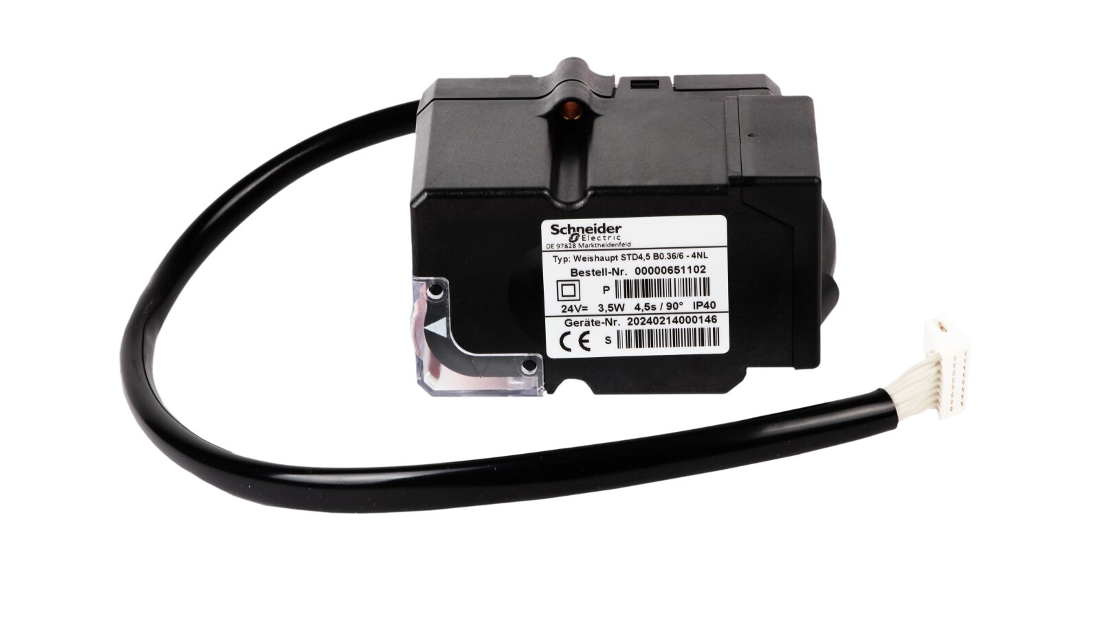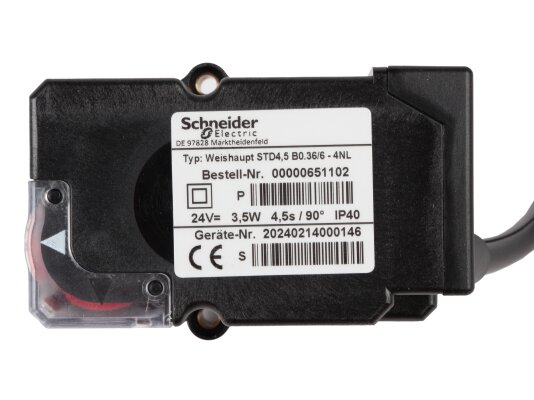 The Weishaupt / Schneider Electric STD4.5 B0.36/6 - 4NL servo drive is used in burners, regulates the position of the air fan damper and changes the amount of air supplied for fuel combustion. The model is characterized by compact dimensions, simple design and extended configuration.