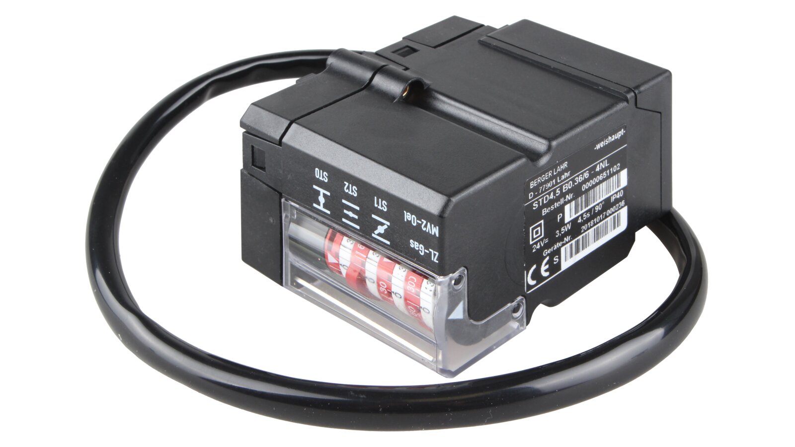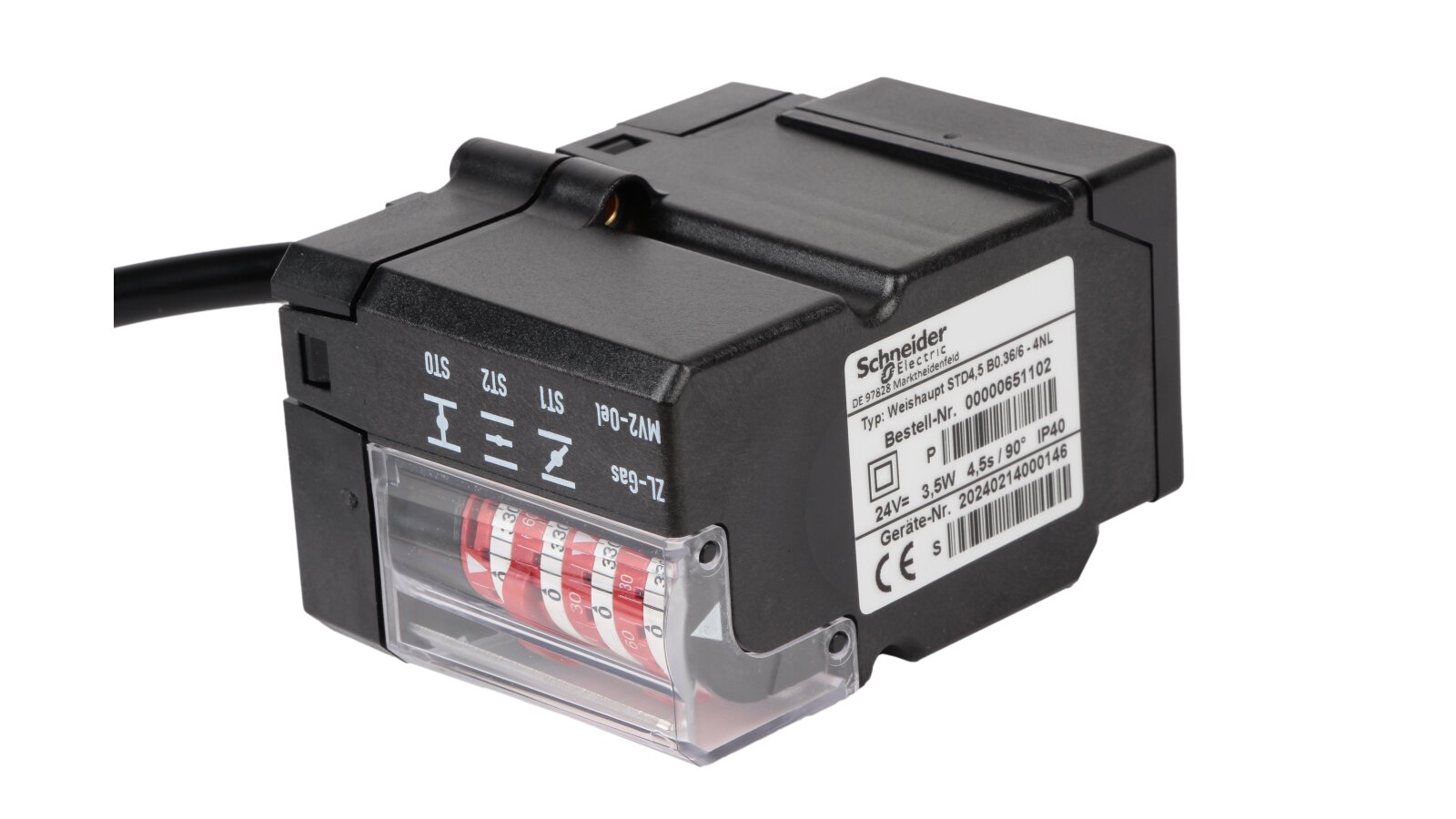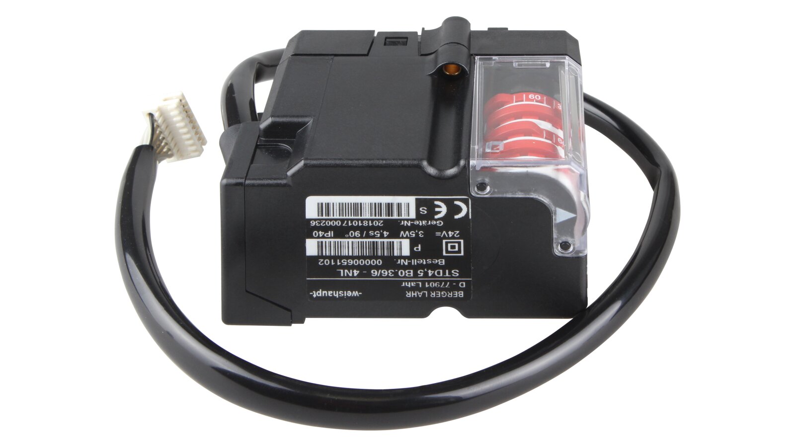 The Weishaupt / Schneider Electric STD4.5 B0.36/6 - 4NL servo drive is used in burners, regulates the position of the air fan damper and changes the amount of air supplied for fuel combustion. The model is characterized by compact dimensions, simple design and extended configuration.