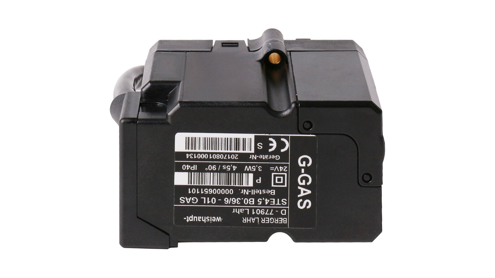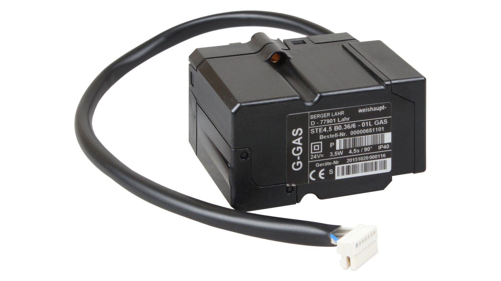 Servo drive Berger Lahr / Schneider Electric STE4,5 B0.36/6 - 01L GAS – version for Weishaupt burner burning gaseous fuel. Provides regulation of the gas damper during ignition and operation of the burner device. The model has an extended package.